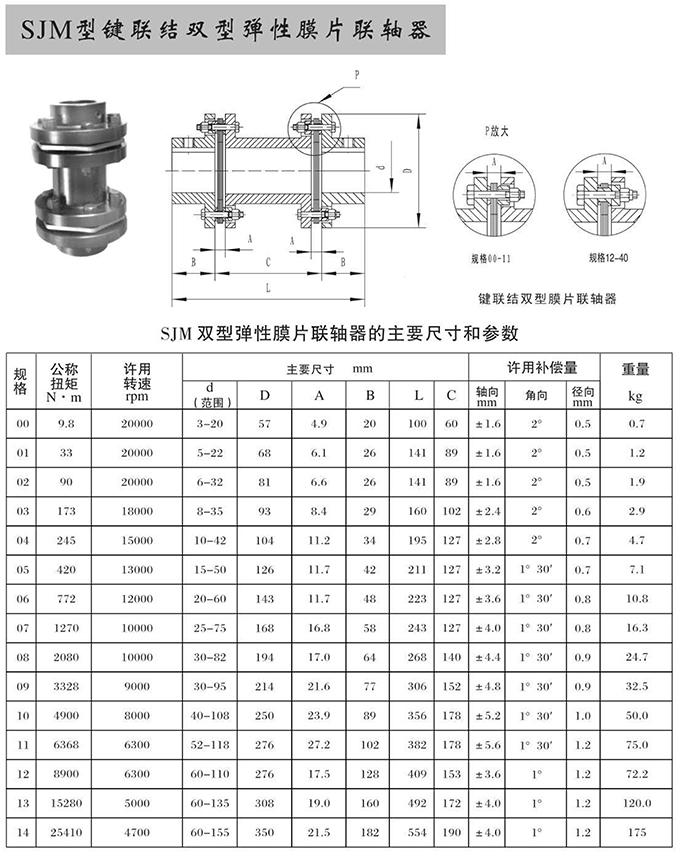 瑞安市寶德隆機(jī)械配件有限公司提供SJM型鍵聯(lián)結(jié)雙型彈性膜片聯(lián)軸器具有拆裝方便,快速安裝等特點(diǎn),廣泛用于連接/固定輪轂孔和零件的軸,例如齒輪,錐齒輪,鏈輪,葉輪,凸輪,皮帶輪和飛輪等軸的聯(lián)結(jié)固定,咨詢電話:18906872378
