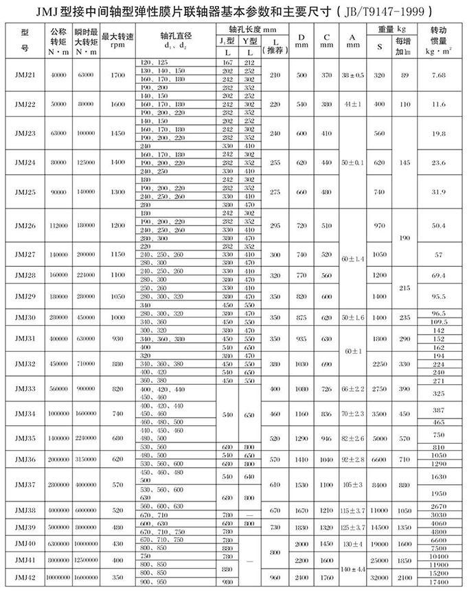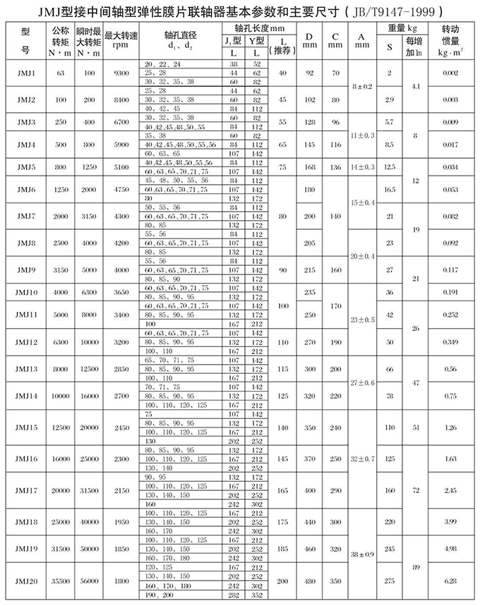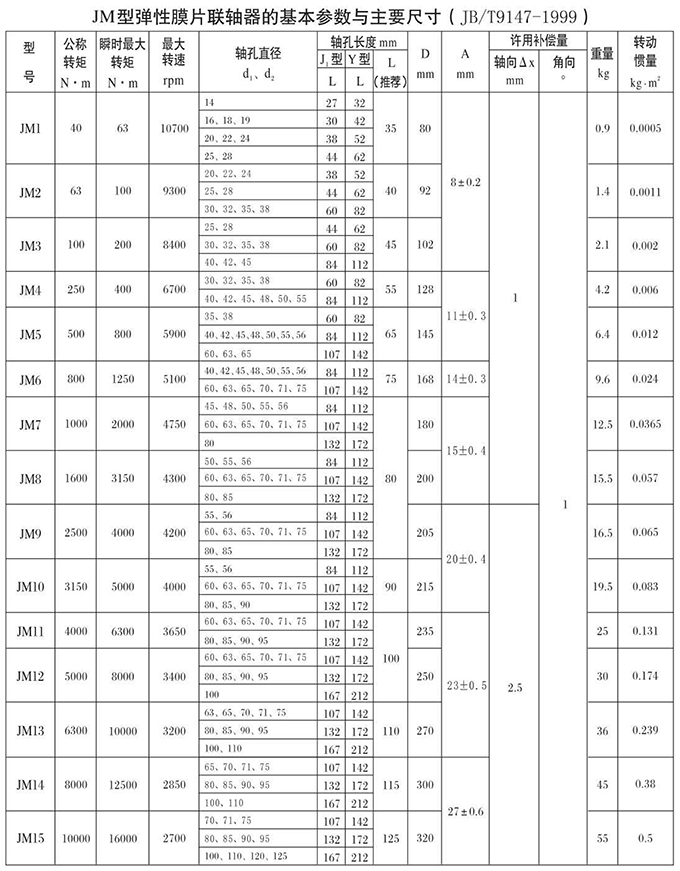 JM、JMJ型彈性膜片聯(lián)軸器