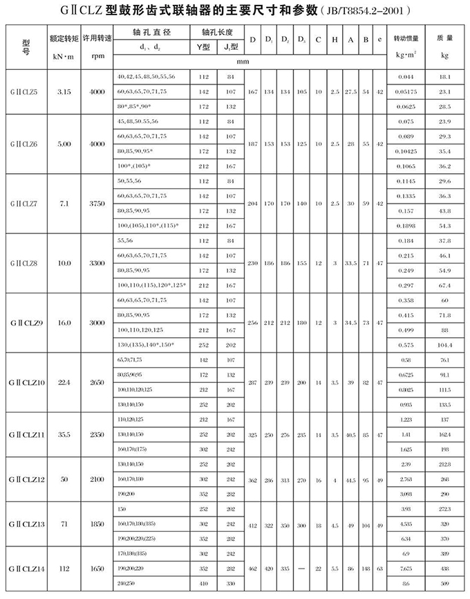 瑞安市寶德隆機(jī)械配件有限公司提供GⅡCLZ型鼓形齒式聯(lián)軸器具有拆裝方便,快速安裝等特點(diǎn),廣泛用于連接/固定輪轂孔和零件的軸,例如齒輪,錐齒輪,鏈輪,葉輪,凸輪,皮帶輪和飛輪等軸的聯(lián)結(jié)固定,咨詢電話:18906872378